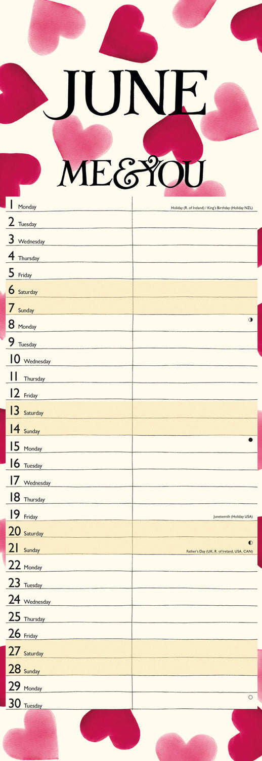 A handy slimline calendar for all your notes and appointments. With classic designs by Emma Bridgewater and featuring two monthly columns to help you both plan ahead and stay organised.