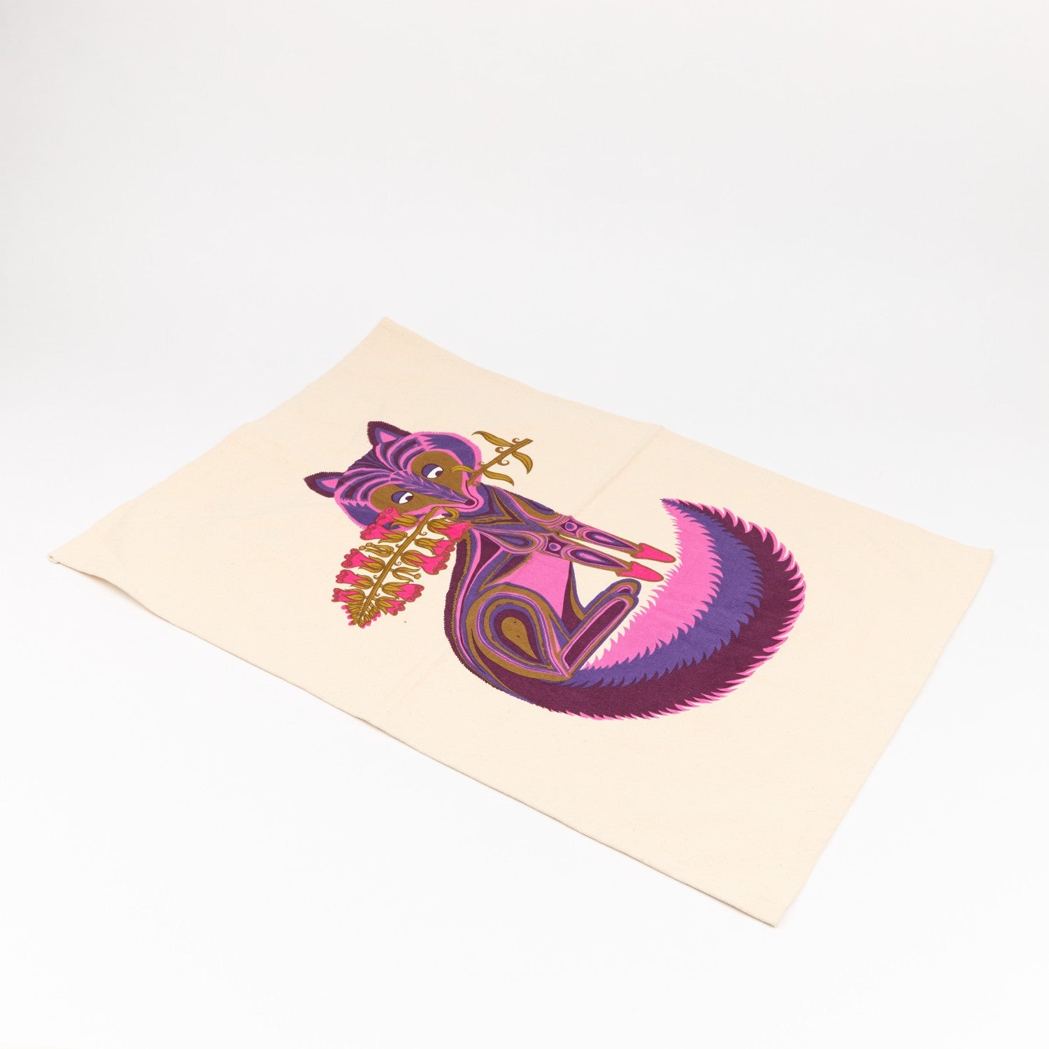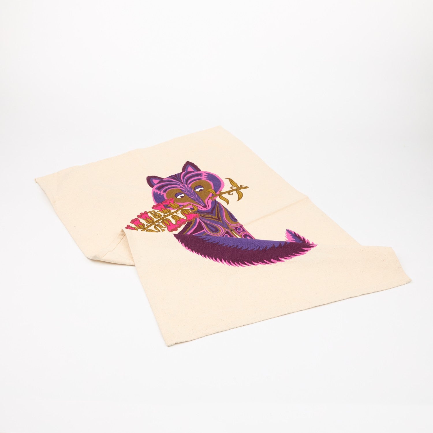 Fair trade, organic cotton tea towel with a vibrant fox design.