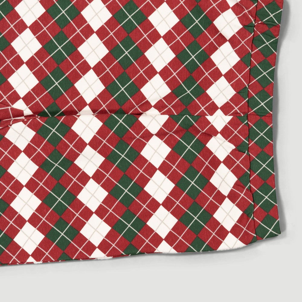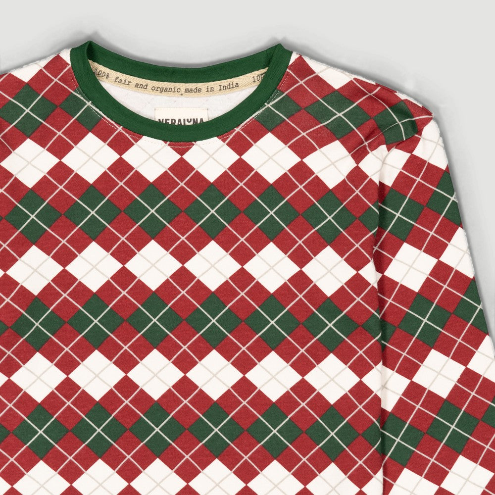 Organic cotton, retro-style PJ Set featuring a vibrant argyle pattern in green and red, perfect for the festive season.
